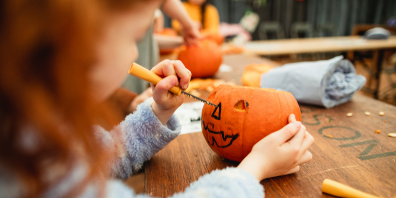 Top of our list just had to be pumpkin carving. Get creative with this fun family activity. When night falls, pop a tea light inside the pumpkin and unleash those spooky smiles.