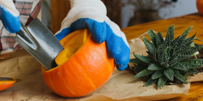 Give your garden a ghoulish makeover with these compostable pumpkin planters. Not only are they eco-friendly, they’re also very simple and fun to create. Using the hollowed-out skin, cut a drainage hole in the base, then fill with soil and a hardy annual of your choice. The pumpkin will naturally compost and release nitrogen into the soil as a nutritious fertiliser for your plants.