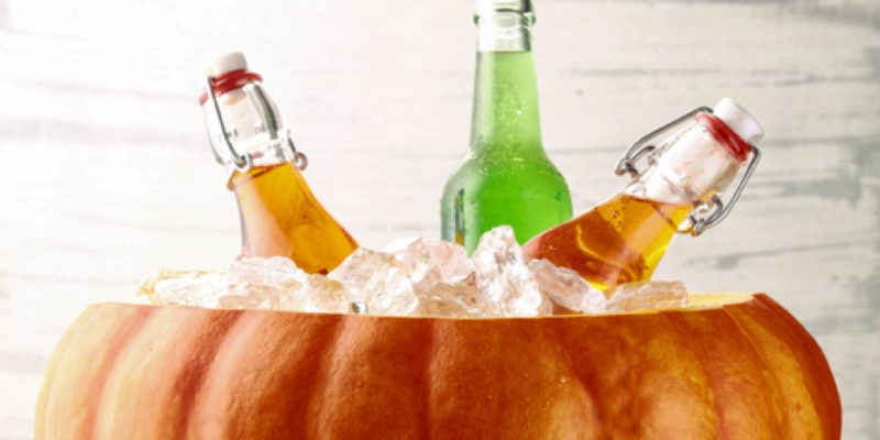 To prevent any spills and reduce the build-up of condensation, place a bowl inside the pumpkin. Fill with ice and bottled drinks to impress your guests. It’s as simple as that!