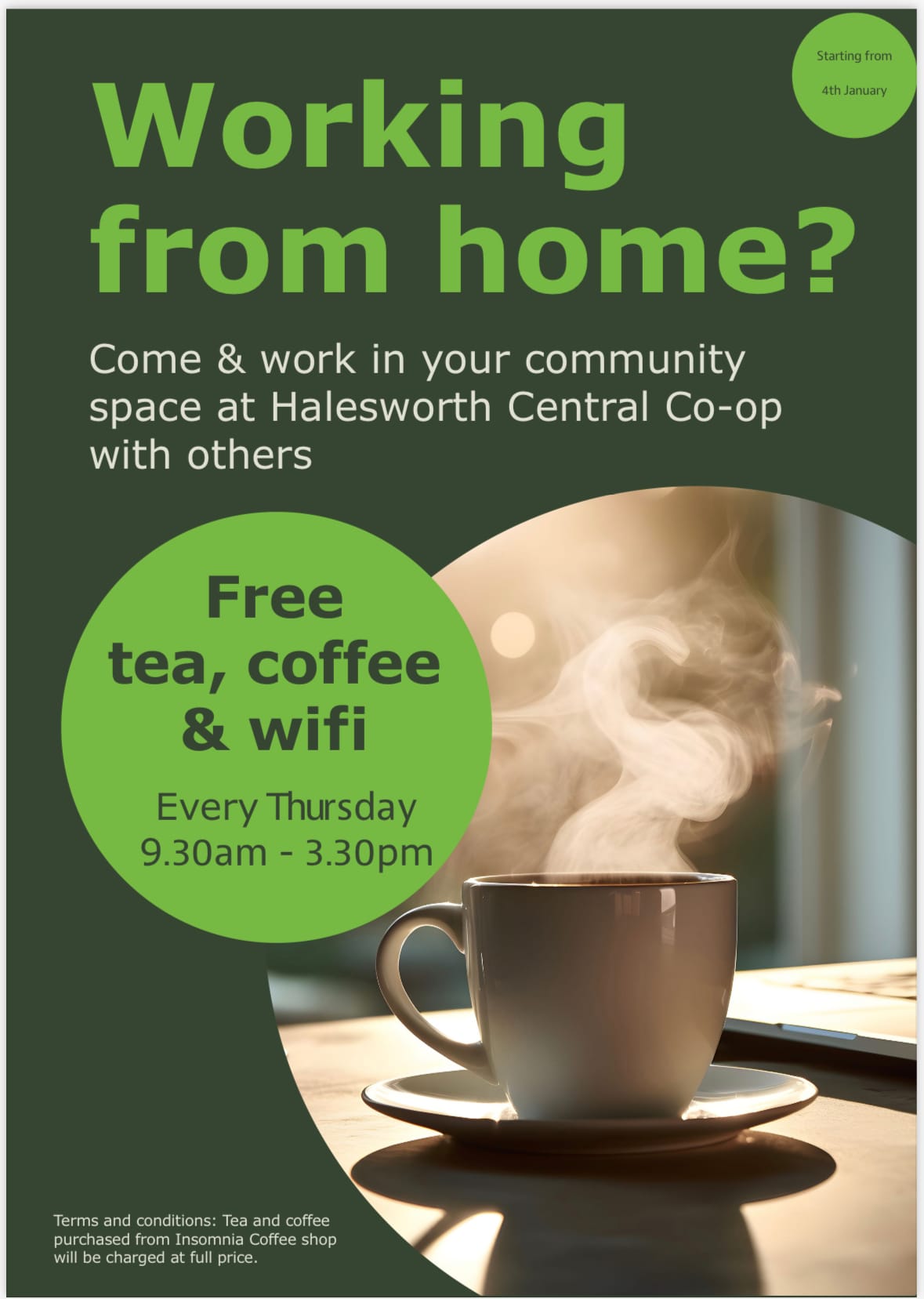 Every Thursday 9.30-3.30 in our Community Room in Halesworth, come and join others who work from home. Have a cuppa in the warm.