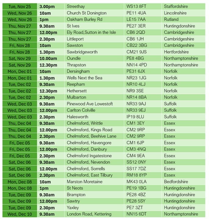 Our Festive Toy Van tour dates and stores can be found below.
