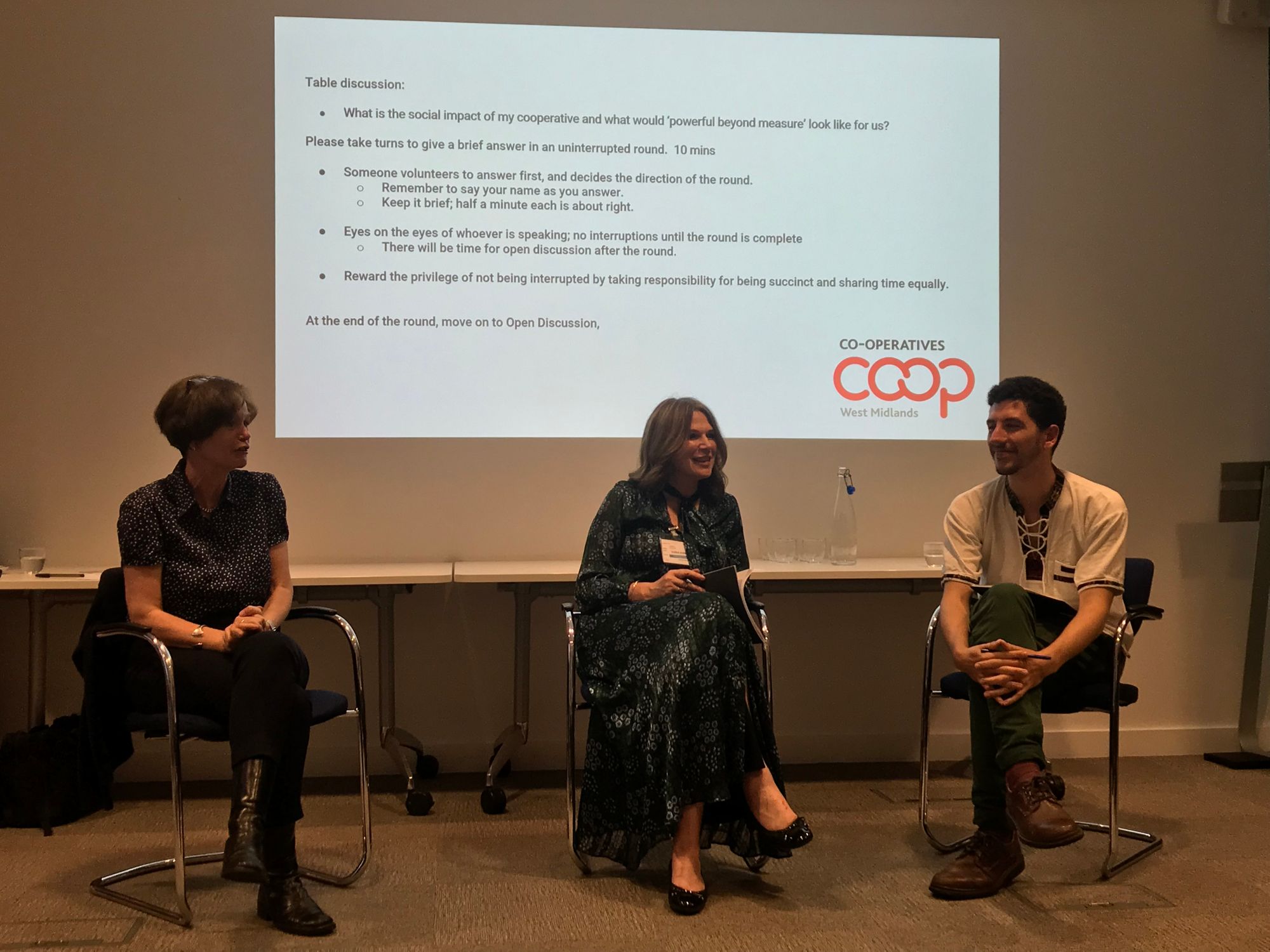 The evening ended with Debbie and Tom listening to what the table groups had been discussing and giving their thoughts. There was a real buzz around how Co-operation and Co-operatives can grow and flourish in the West Midlands, with Co-ops West Midlands being a driving force in this.