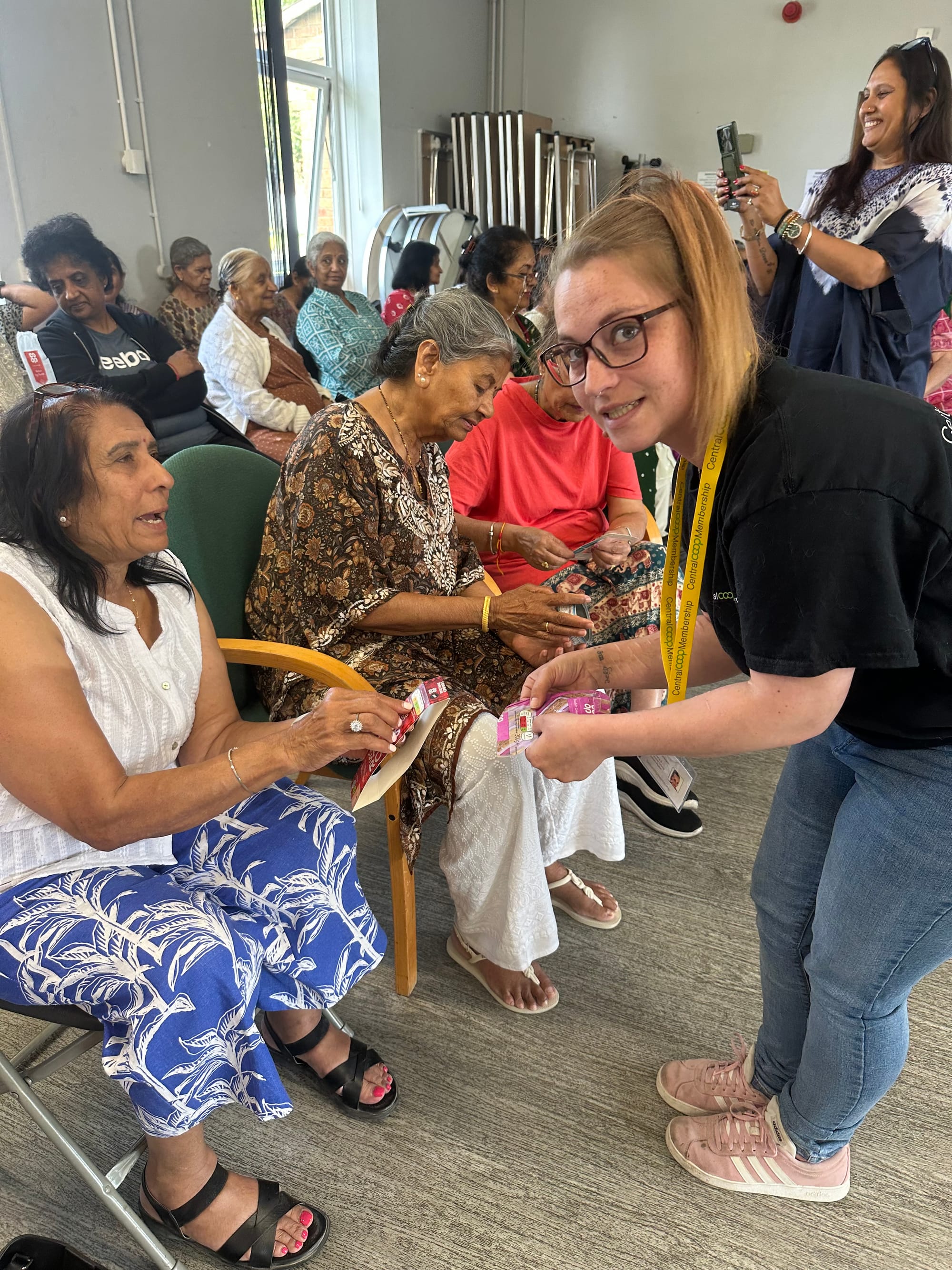 This week, we had the pleasure of meeting 70 Asian women who are supported by the Centre for Ethnic Health, based at Leicester University. We were asked if we could come along to one of their sessions and talk about healthy life styles and they were so engaging, we presented our Co-op History talk before moving on to our healthy choices workshop.