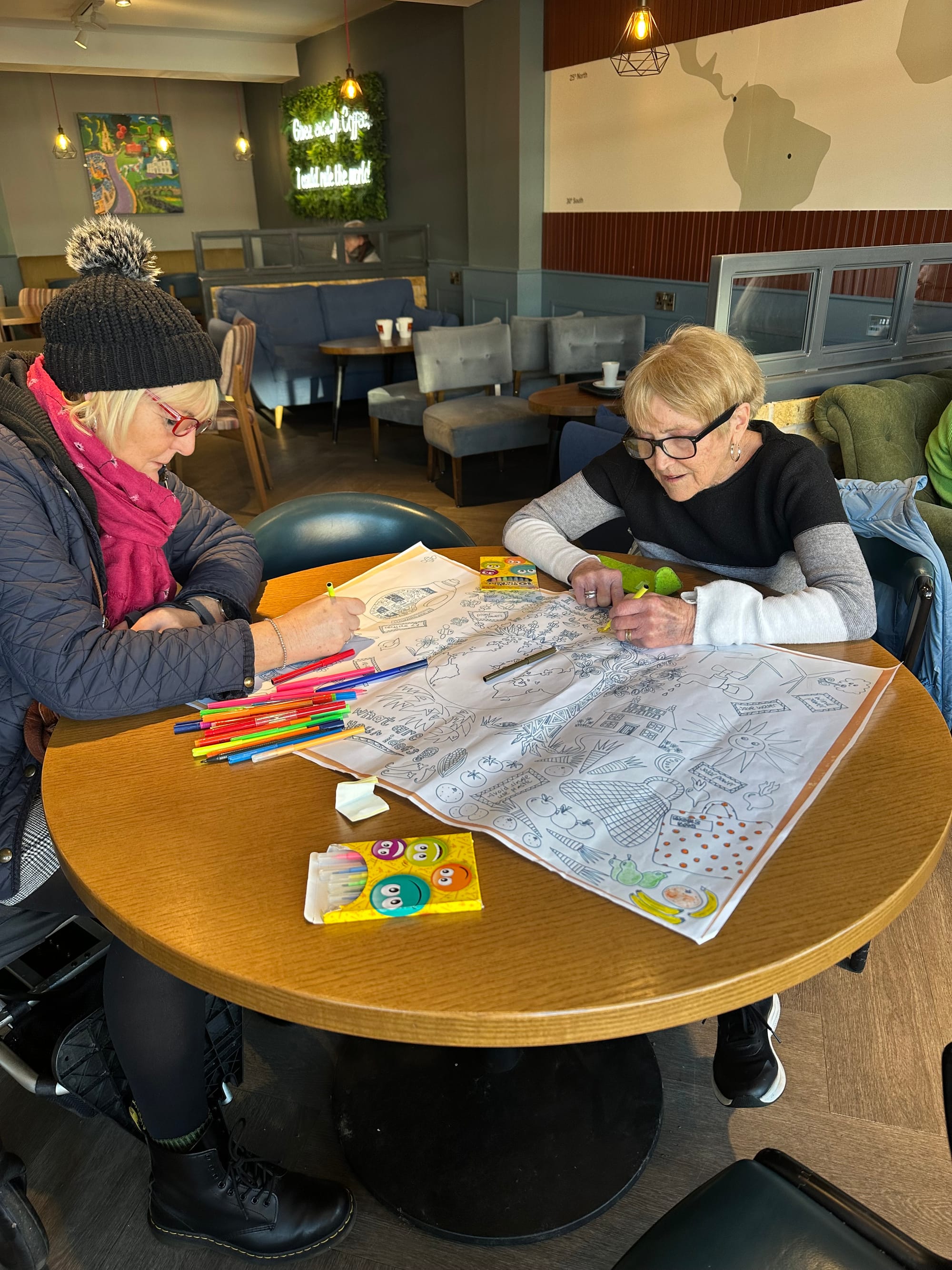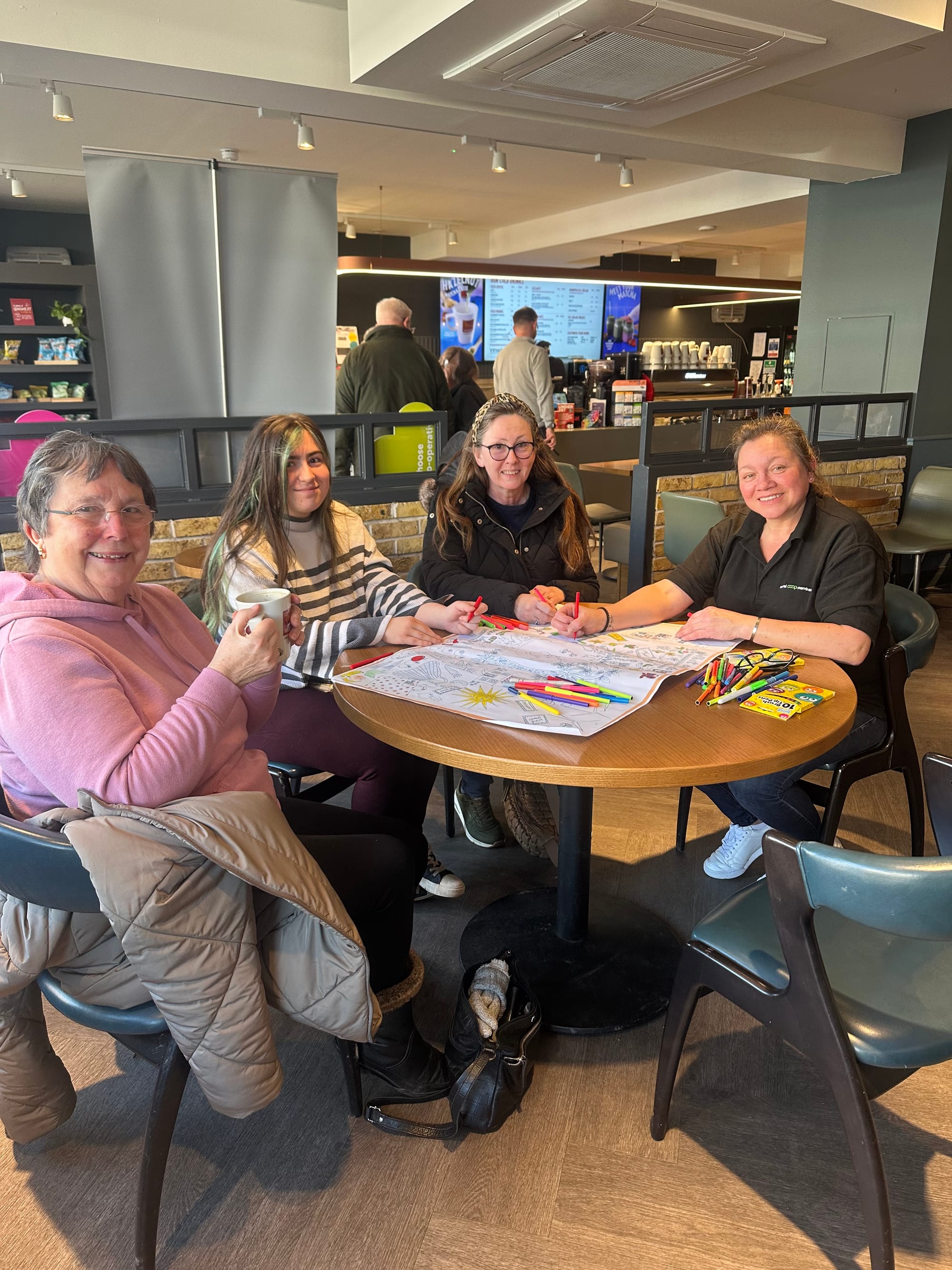 Most people joined in with the mindful colouring whilst sharing experiences, or just enjoyed a conversation. Quite a few stayed for the duration of the whole event and thanked us when they left and "it was good to talk".