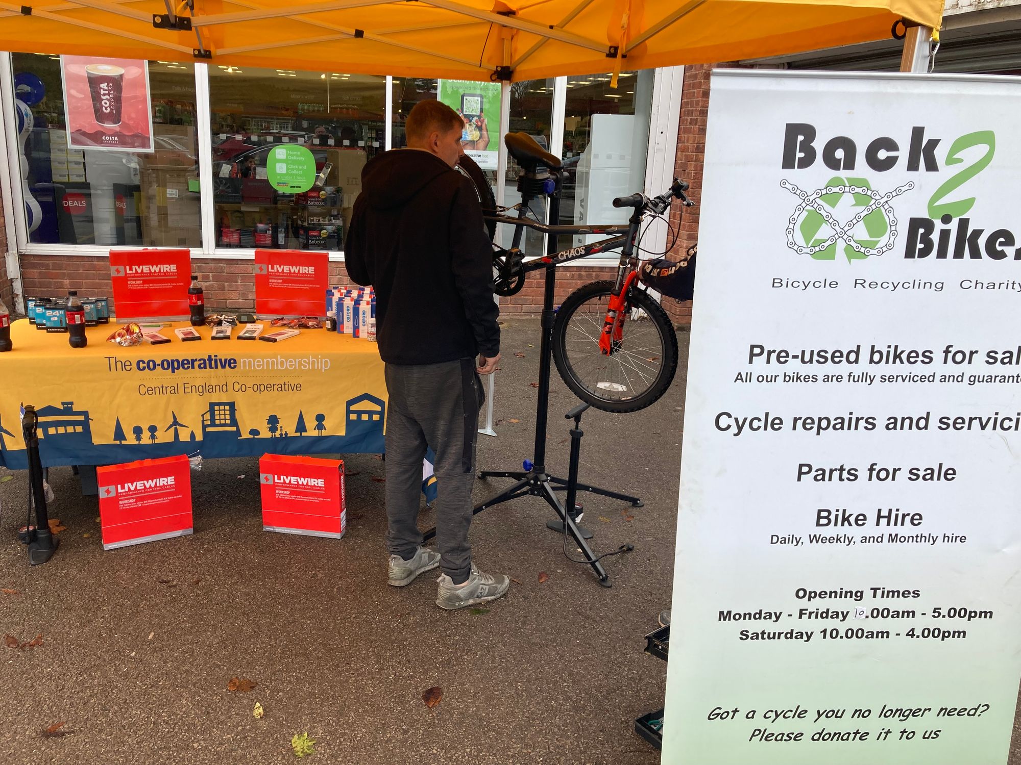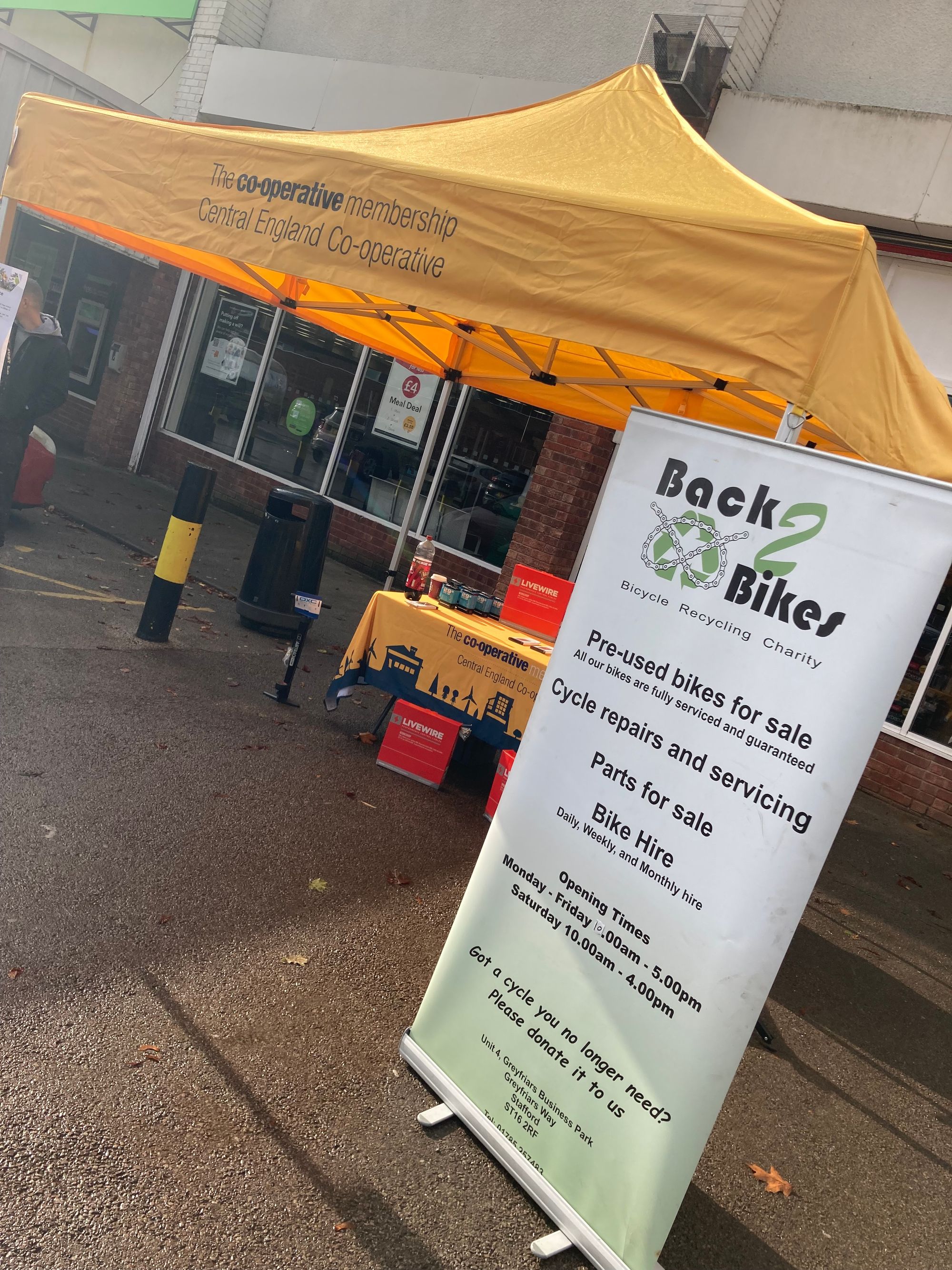 In Stafford the team from Back to Bikes, a community bike repair shop who repair unwanted bikes and sell back to disadvantaged members of the community at reduced rate supported at our Wildwood store, with Birmingham Bike Foundry, a Worker Co-op from Stirchley, Birmingham supported with our event in Northfield store.