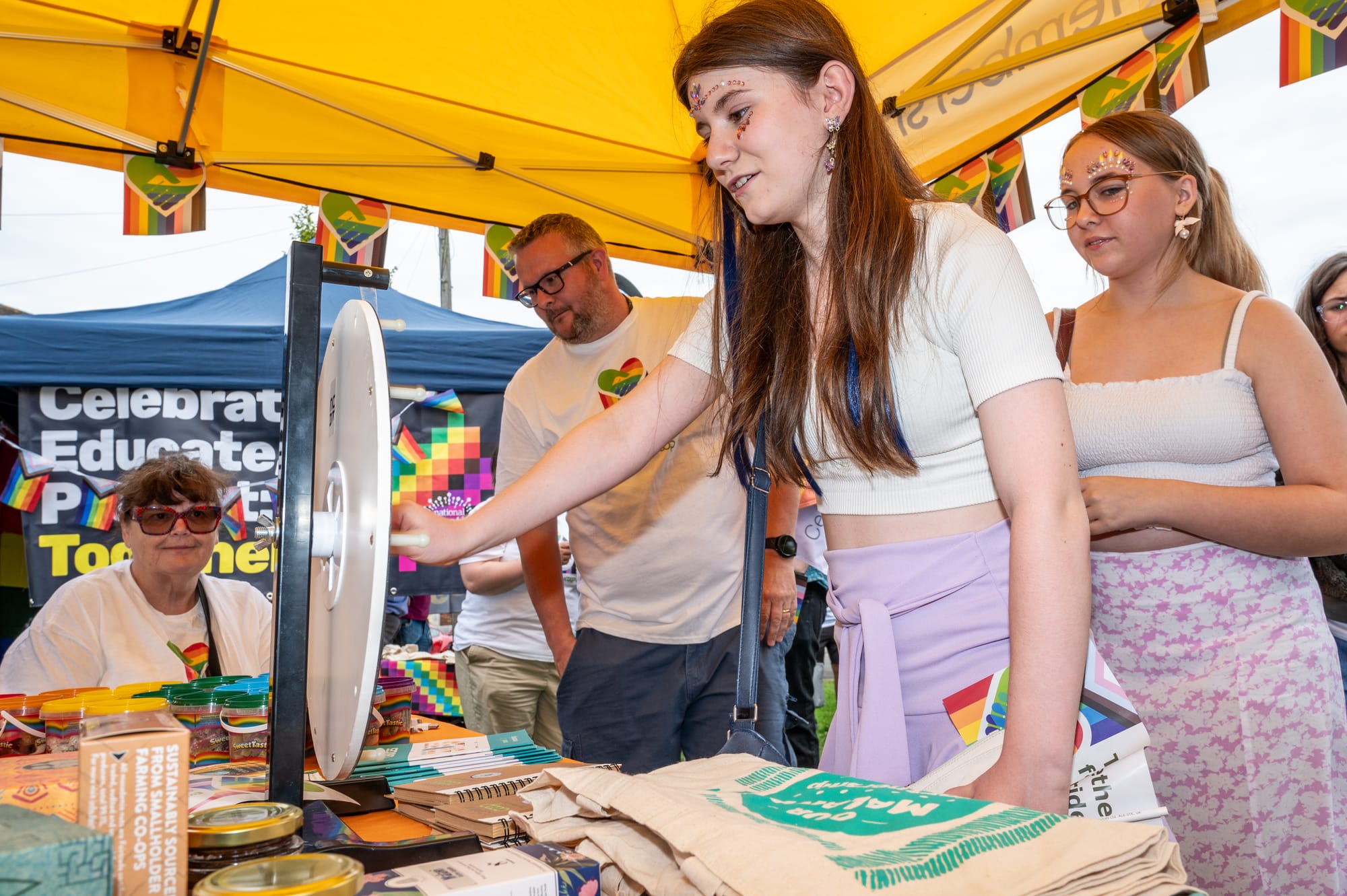 Our community stall showcased our 'Oxfam Pride Range' and our 'Malawian Product Range' alongside some fun giveaways where the public can spin the wheel, win a prize, and have some fun while learning more about Central Co-ops work in the community