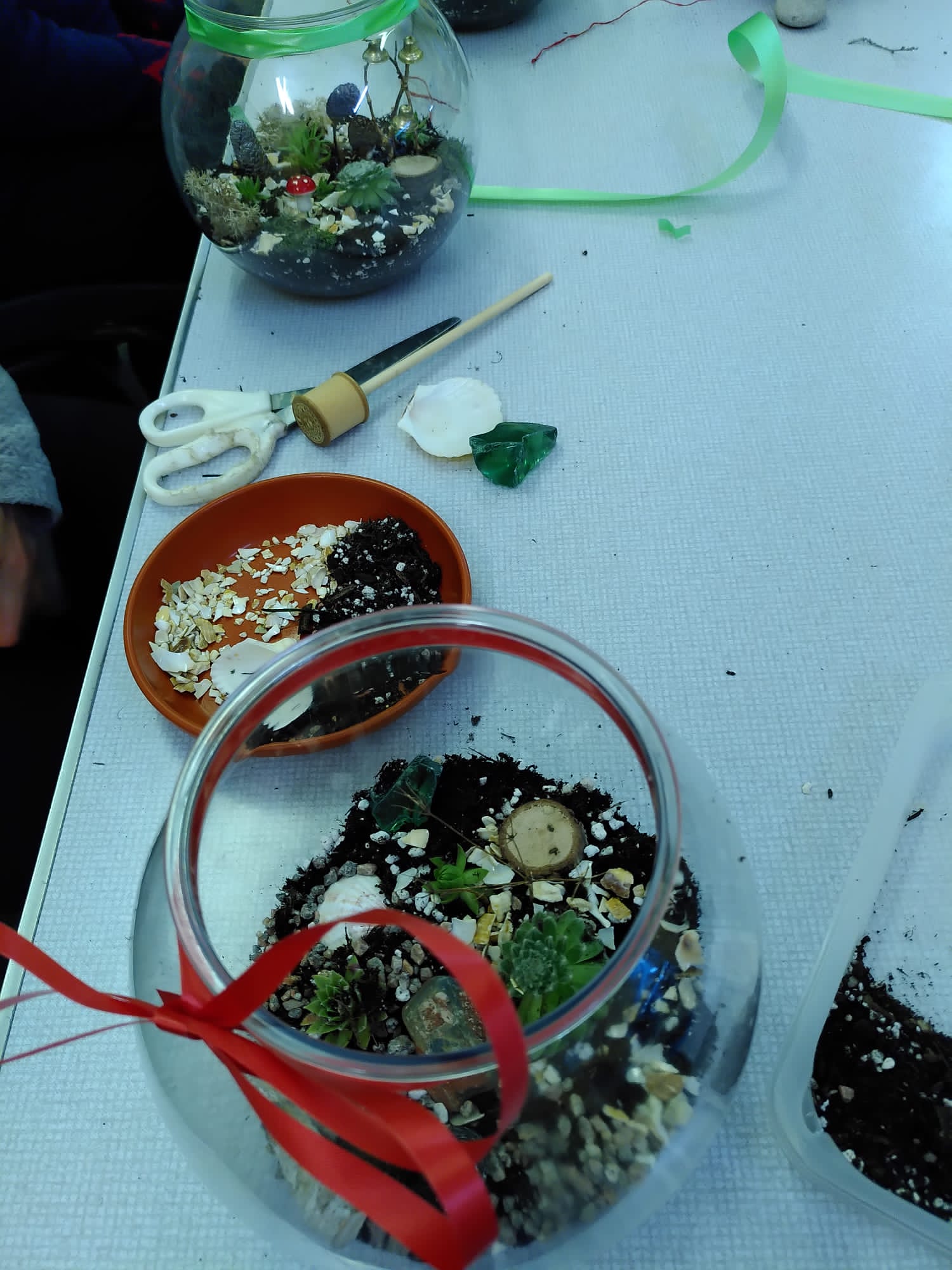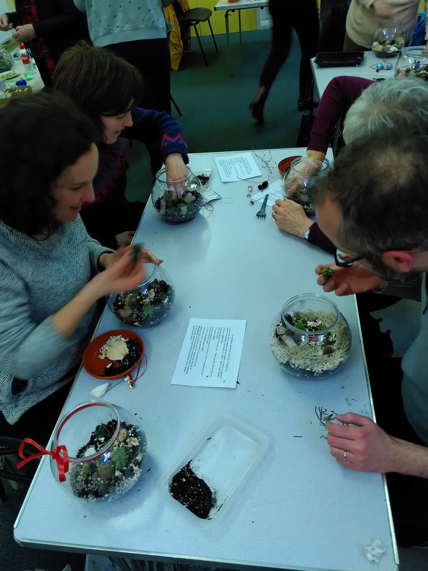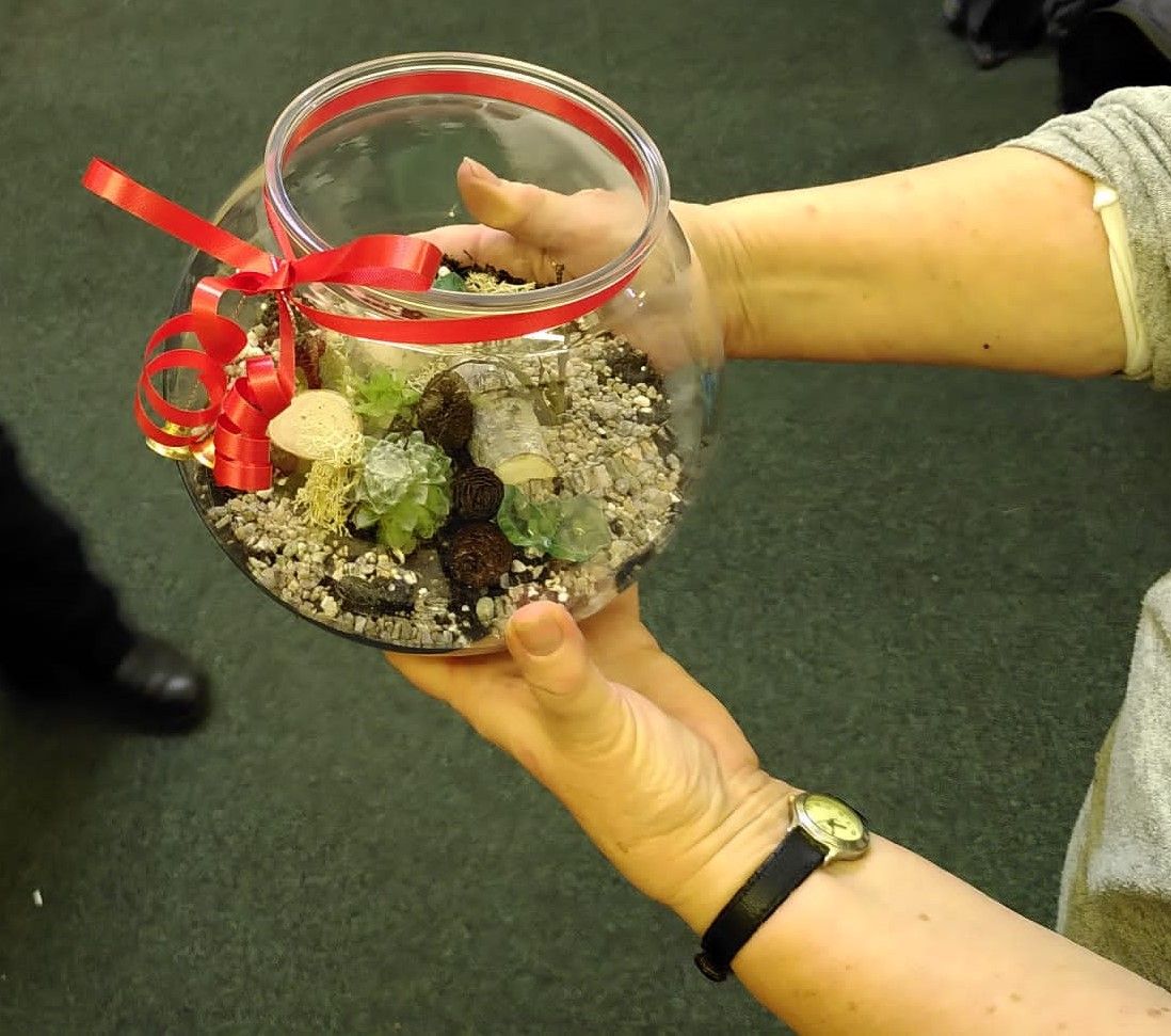 The last Co op gardening club of the 2022 saw us making terrariums (miniature gardens which can mostly look after themselves through condensation). One of our members talked us through the process, providing us with various tiny plants, planting mediums and decorations- they were definitely going to make great Christmas centre pieces!