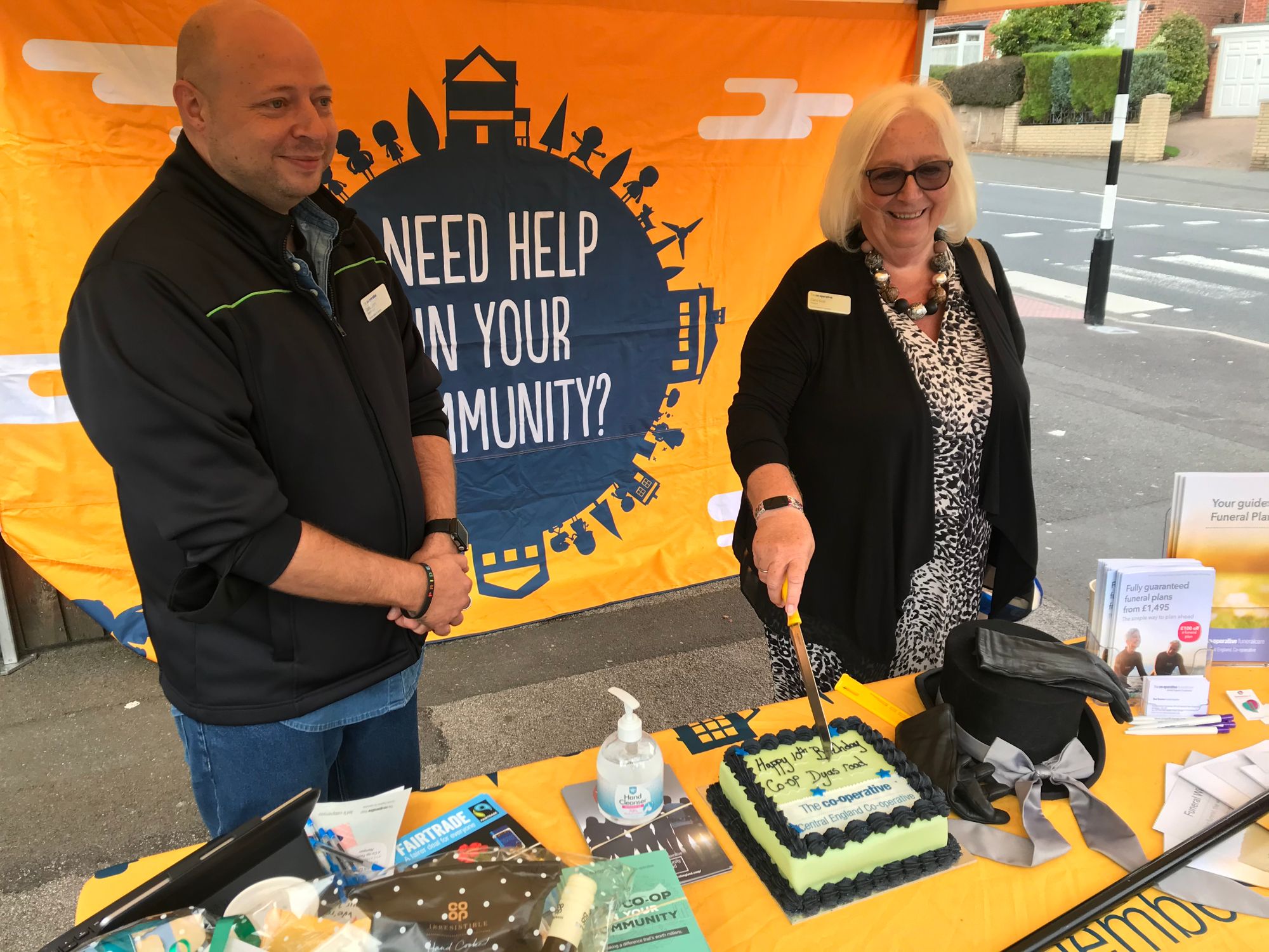 Our Society President Elaine Dean and Retail Operations Manager Adrian Dunn popped in on their travels to show their support for the celebrations. Elaine was invited to cut the cake with store manager Dan.