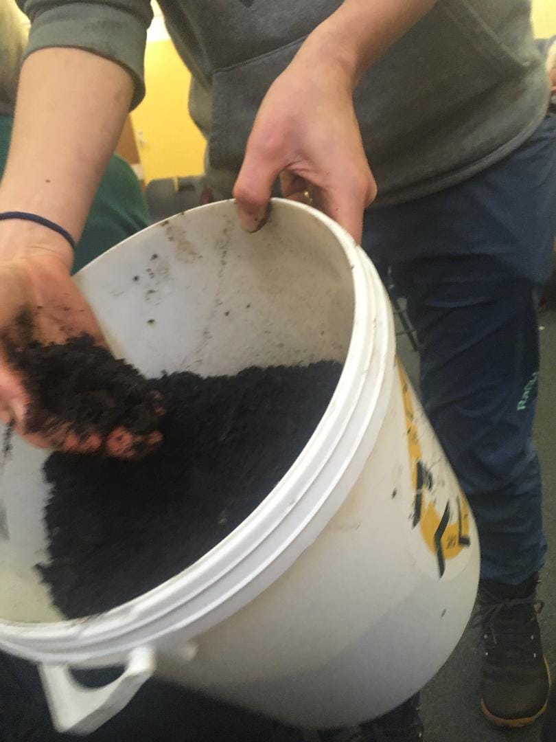 We learned about the proportions of compost ‘ingredients’: carbon, nitrogen and oxygen. Nitrogen is the juicy fresher stuff (weeds, grass clippings, coffee grounds, food scraps) called ‘Greens’, and the carbon is the dried out more dead stuff (twigs, dried out plants, sawdust, autumn leaves, cardboard) called ‘Browns’. A balance of these is needed in order to create good compost- and not a smelly, slimy heap! The microbes help break all of this down into the lovely crumbly compost and they need oxygen- so turning the compost helps to create air pockets for this.