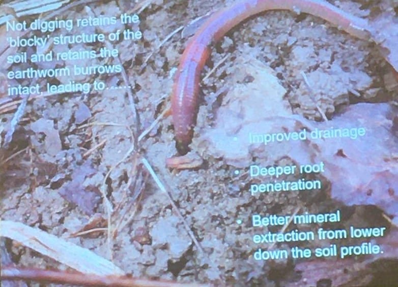 He explained that although the talk was called ‘no dig’ gardening- there is actually loads of digging going on- only not by humans but by worms! Us digging actually destroys the soil profile and standing on it compacts it- so we can sit back and let the worms do the hard work!